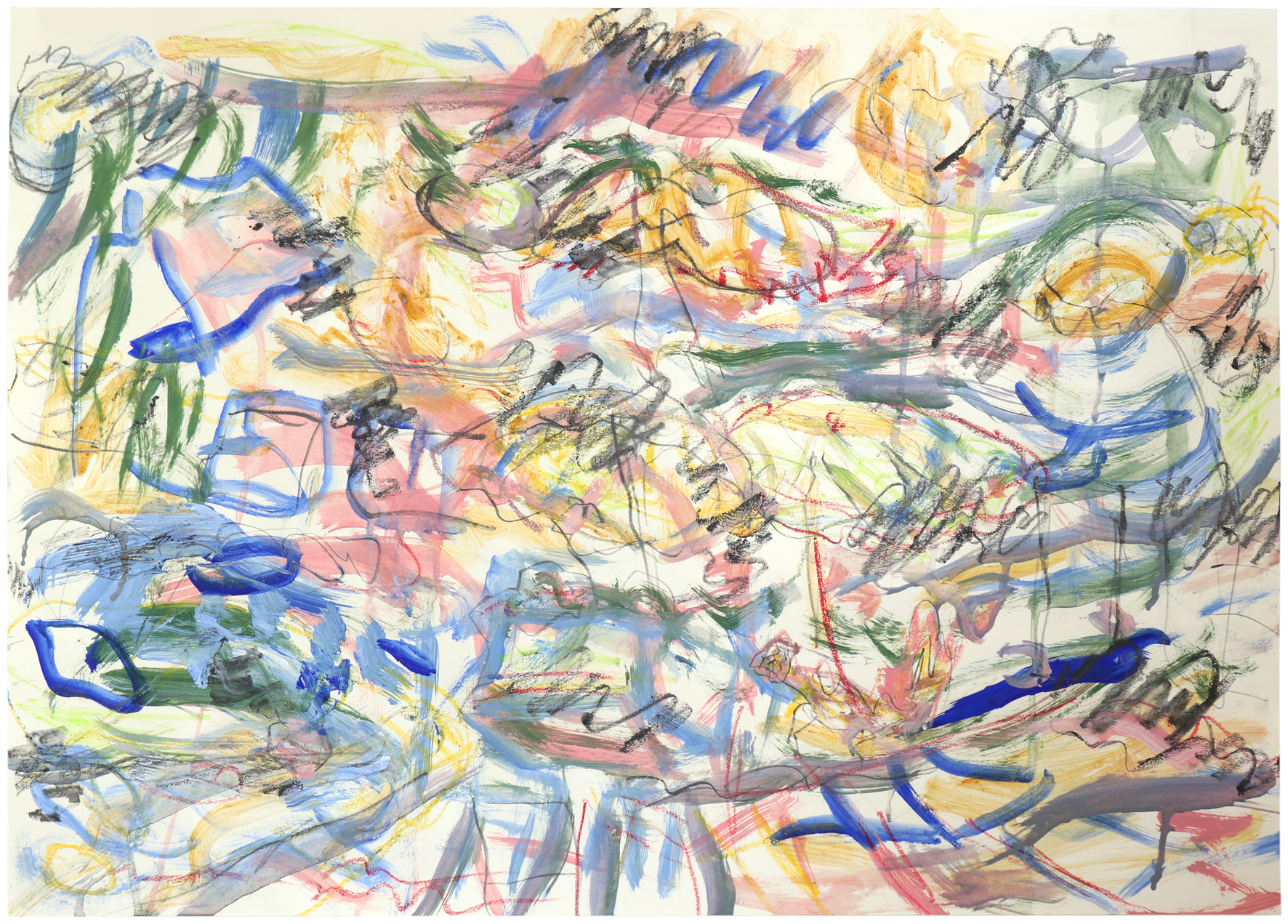 2021Kobold 50 x 70 cm Acryl, Ölkreide, Monoprint auf Papier 2022Rosengarten oder Kirschblüten